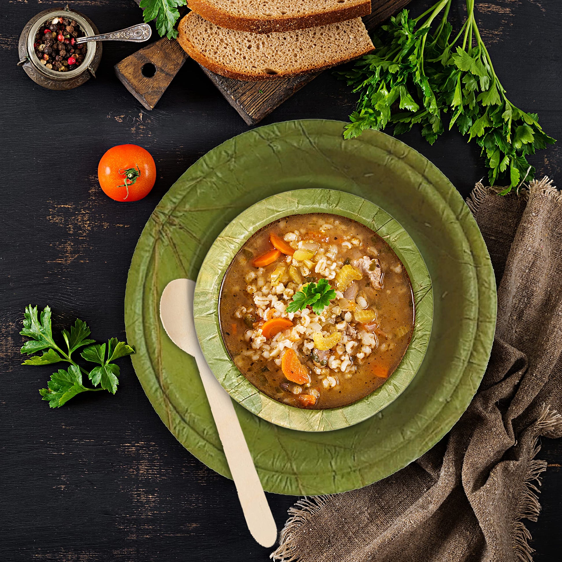 - 100% USDA certified environmentally-safe tableware doesn’t impact the landfill after it’s used.