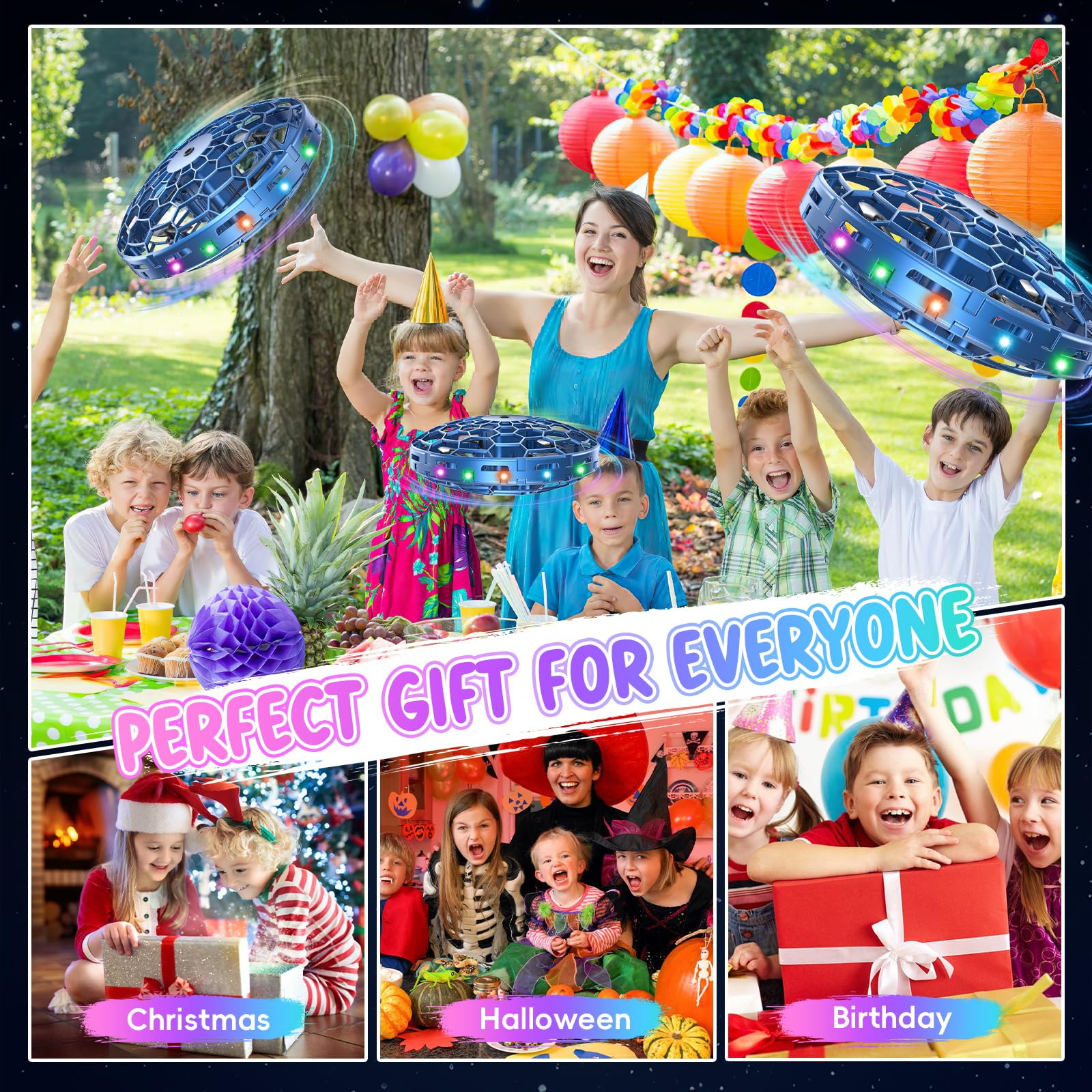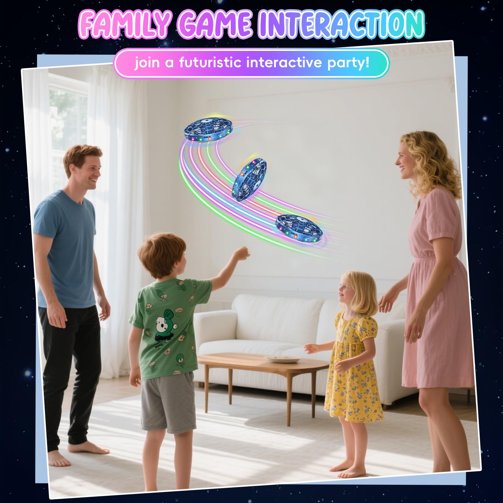 - Beginner-Friendly:This indoor hovering drone, designed specifically for beginners, features a powerful motor and intelligent obstacle-avoidance sensors for easy handling. With just a wave of your hand, you can effortlessly guide it to fly in any direction, light up the LED lights, float, move, and even perform amazing 360° stunts in the air! The flight stops immediately when you grab the UFO toy, making it safe and fun for kids to easily start their flying adventure!