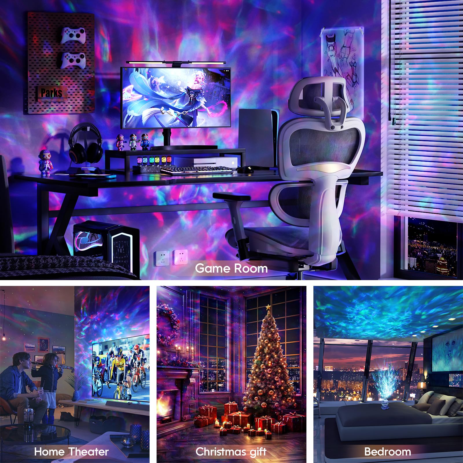 - Sound Activated & Built-in Bluetooth 5.1 Speaker - Our galaxy projector led lights for the bedroom has a cool feature where the projection can sync with your music and move along with the beat, creating a fun and energetic party atmosphere. You can also connect via Bluetooth to play music from this galaxy light projector and watch in amazement as the little star lights and nebula clouds move rhythmically to the beat of the music.