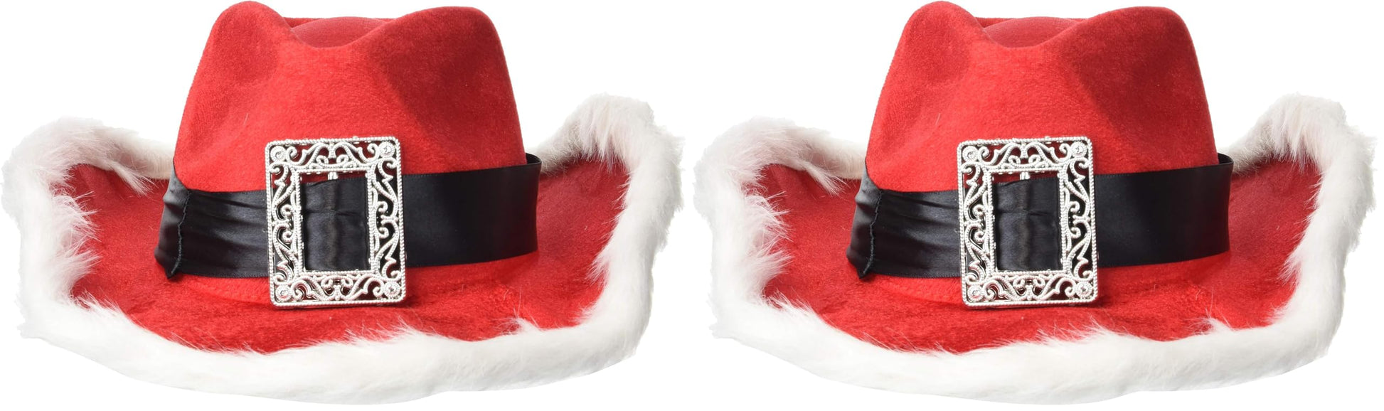 - UNIQUE DESIGN: Be the coolest Santa in town with this hat that features a wide brim trimmed in white faux fur and has a black hatband with a large western style buckle