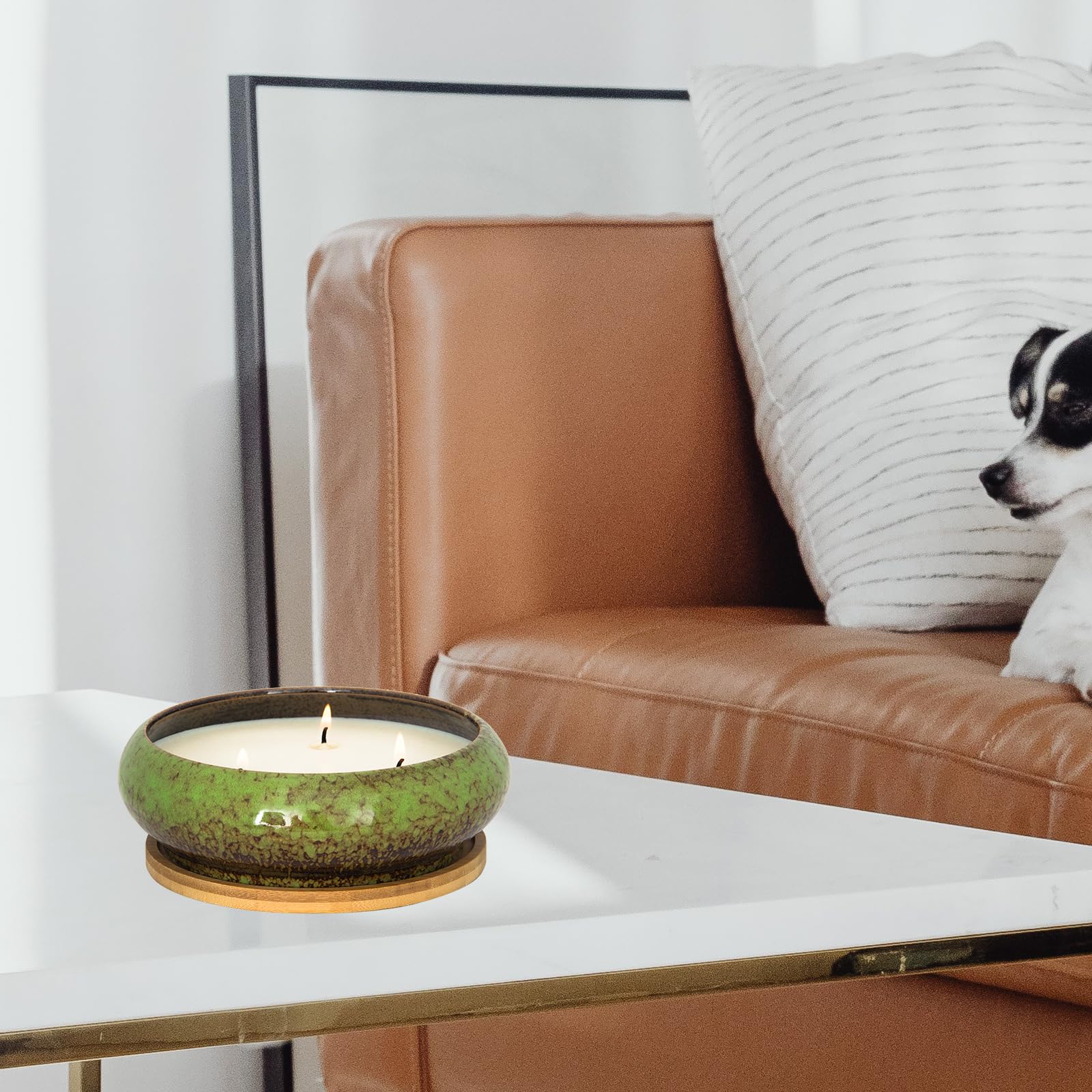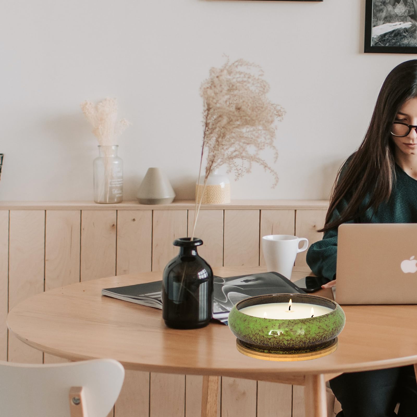 - 【Long-Lasting Burning】Our large candle is 17 oz, size is 7.3 inches wide and 2.17 inches high, can provide 34-50h long-lasting burning, the 3-wick design makes it burn evenly. During this period, you can enjoy the happiness brought by the fragrance.