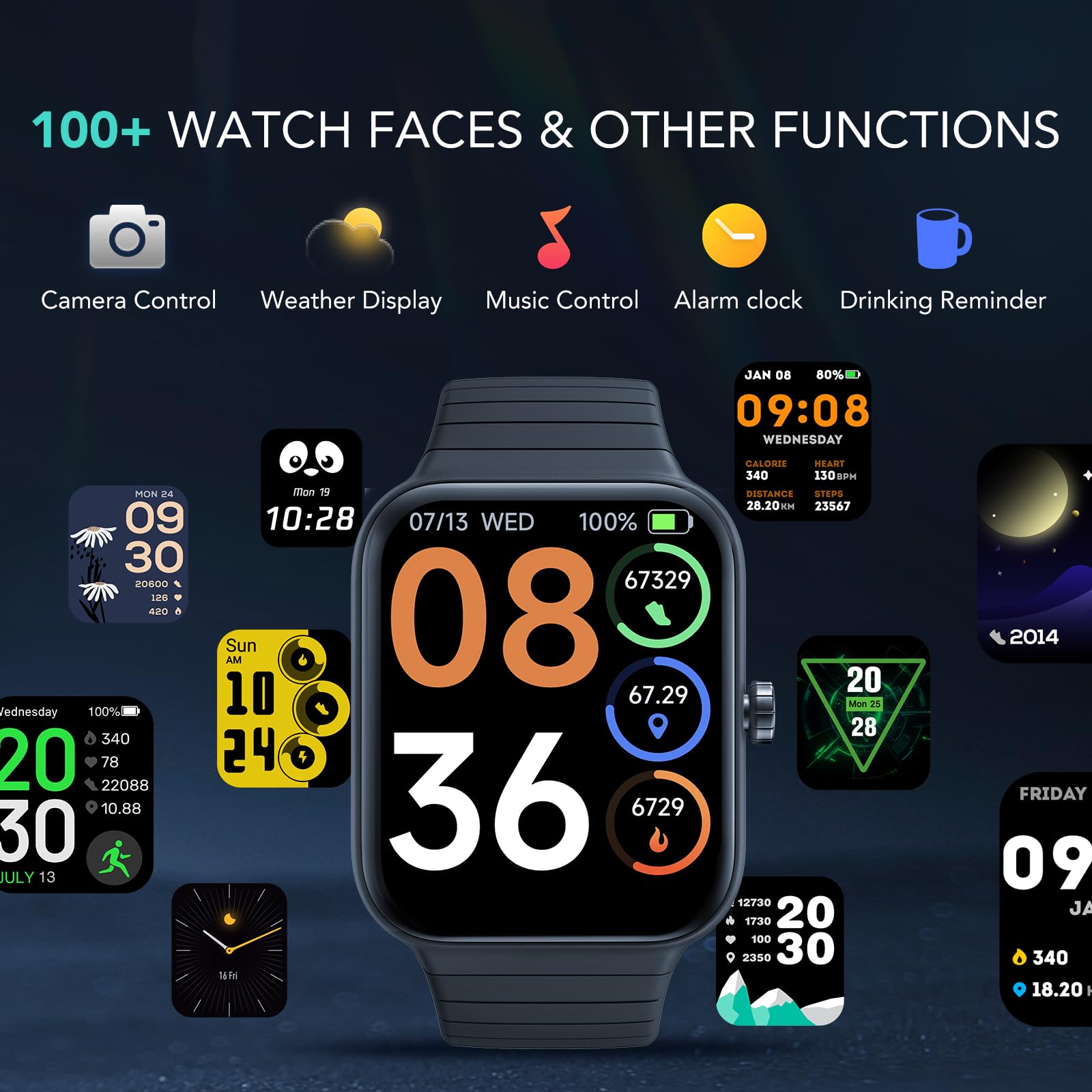 - 100+SPORT MODES & IP68 WATERPROOF: The smart watch for men women supports more than 100+ sports modes, choose your favorite sports on the watch or inside Veryfit app, set the training goal and achieve, periodic data presentation can effectively help you perceive changes and help track the effects of movement. With the IP68 water resistance and drainage function, You don't have to worry about the normal use of your watch, even if you are swimming, washing your hands or exercising in the rain.