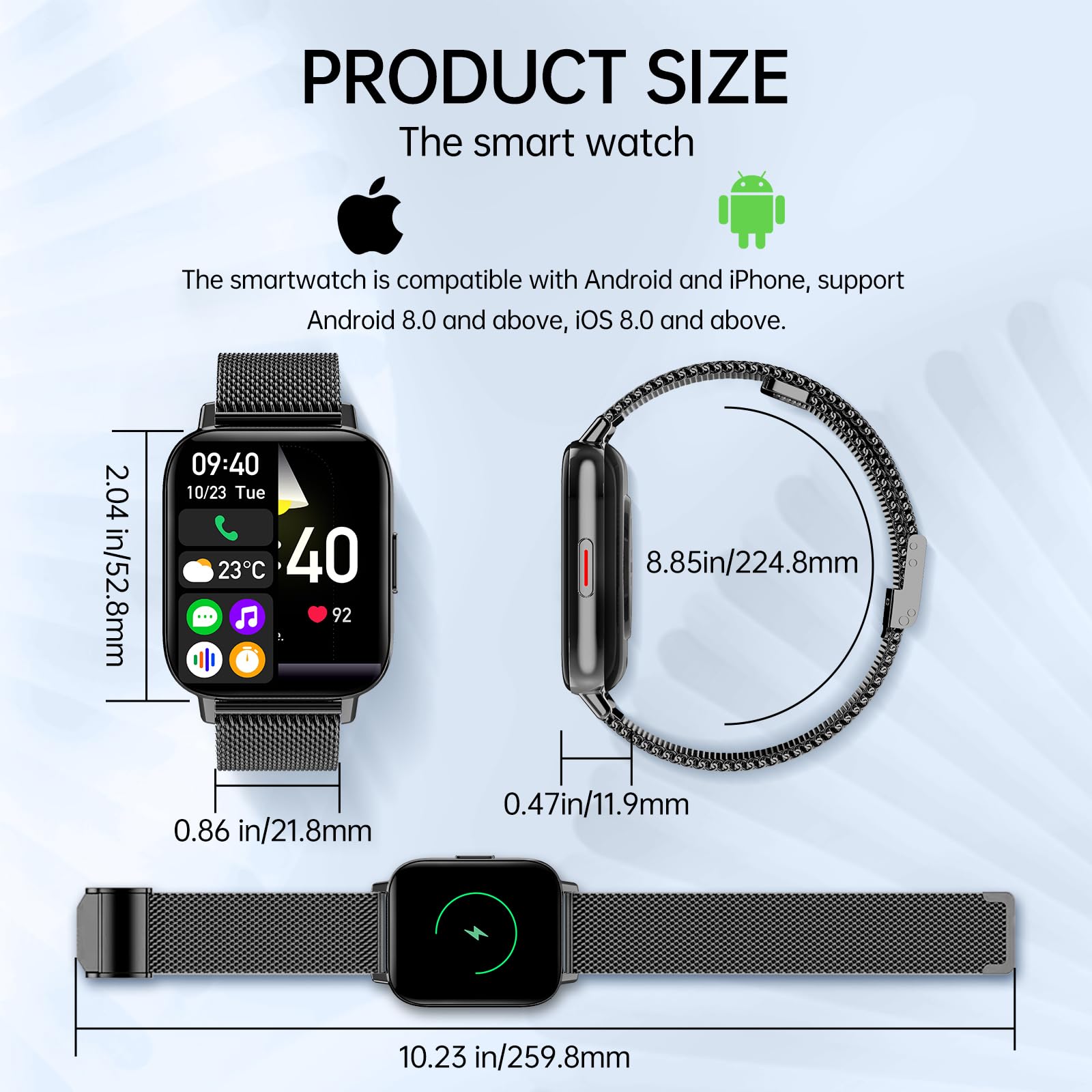 - 【1.85-inch Customizable HD Screen & 2 Watches Straps】This 1.85-inch HD touch screen smartwatch comes with 1 free replaceable silicone straps, which can be flexibly matched according to your personal needs. The free silicone watch is light and comfortable to wear, and you can wear it in daily activities and sports modes such as fitness to track your movement at all times. The Black Steel strap adopts a bright gold-plated design (low-key luxury), Which can be worn on important occasions such as friends gatherings and daily commuting. Extra gifts: adjustable brightness and scratch-resistant coating.