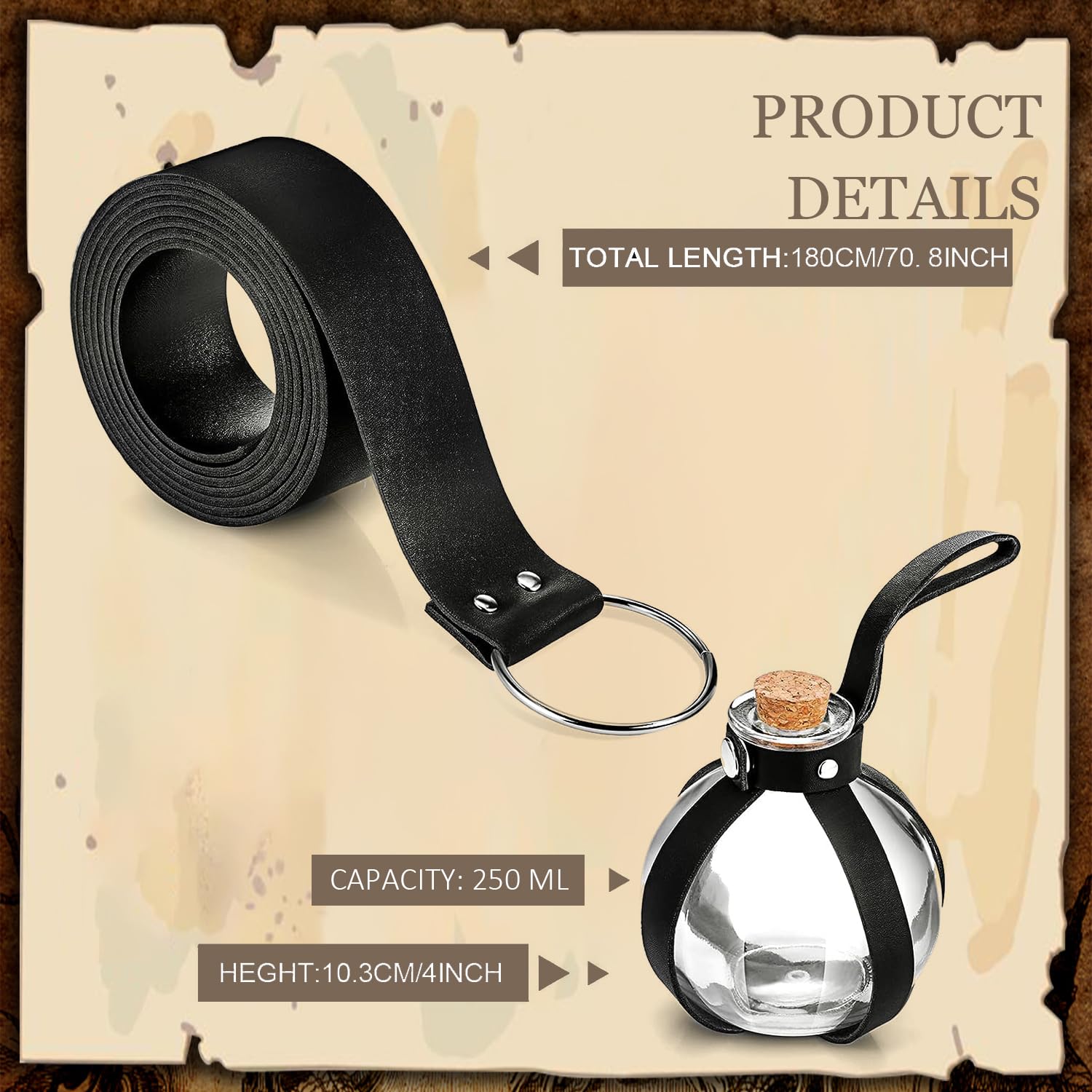 - Witch and Wizard Dark Magic Cork Potion Bottle Costume Accessory - equipped with a detachable cork lid, leather bottle holder holster & belt hoop( Stronger leather and harder glass materials). 8.4oz/250ml woodland fairy accessories, fit most costume set.