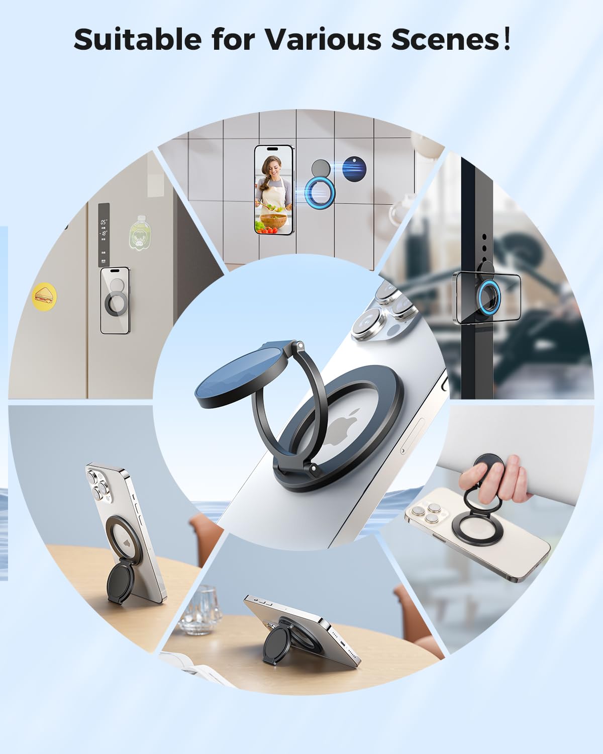 SUPERONE Magnetic Ring Holder for MagSafe Dual-Side Magnetics, Removable Gym Phone Grip with Kickstand for iPhone 16/15/14/13/12/ Series MagSafe Case All Phones Compatible with Magnetic Car Mount