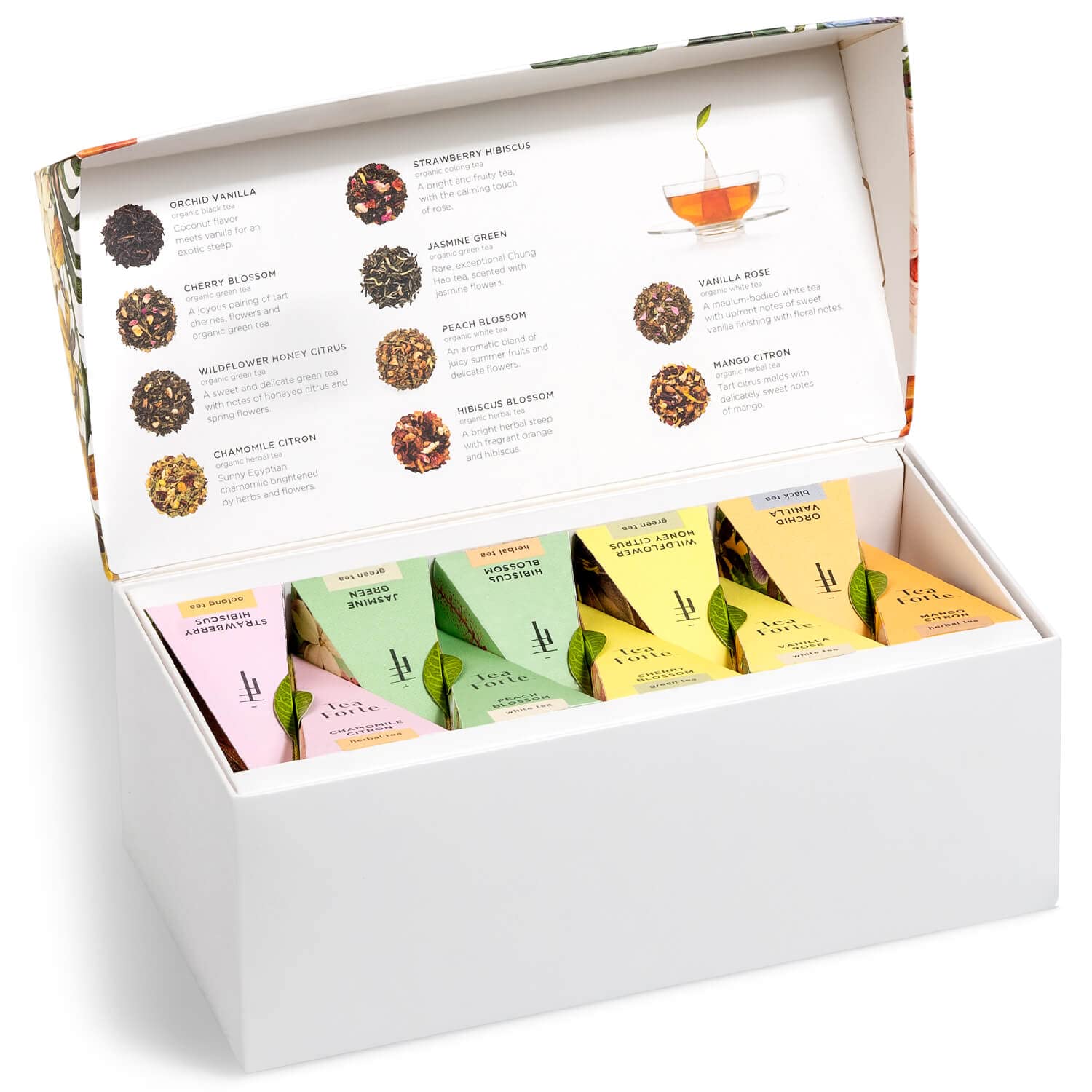 - JUBILEE PRESENTATION BOX includes a variety of hot teas with herbal tea, oolong tea, white tea, and black teas that are perfect for a gift basket, gifts for women, tea gifts, or as a gourmet tea sampler for those just starting their journey with Tea Forte Teas.