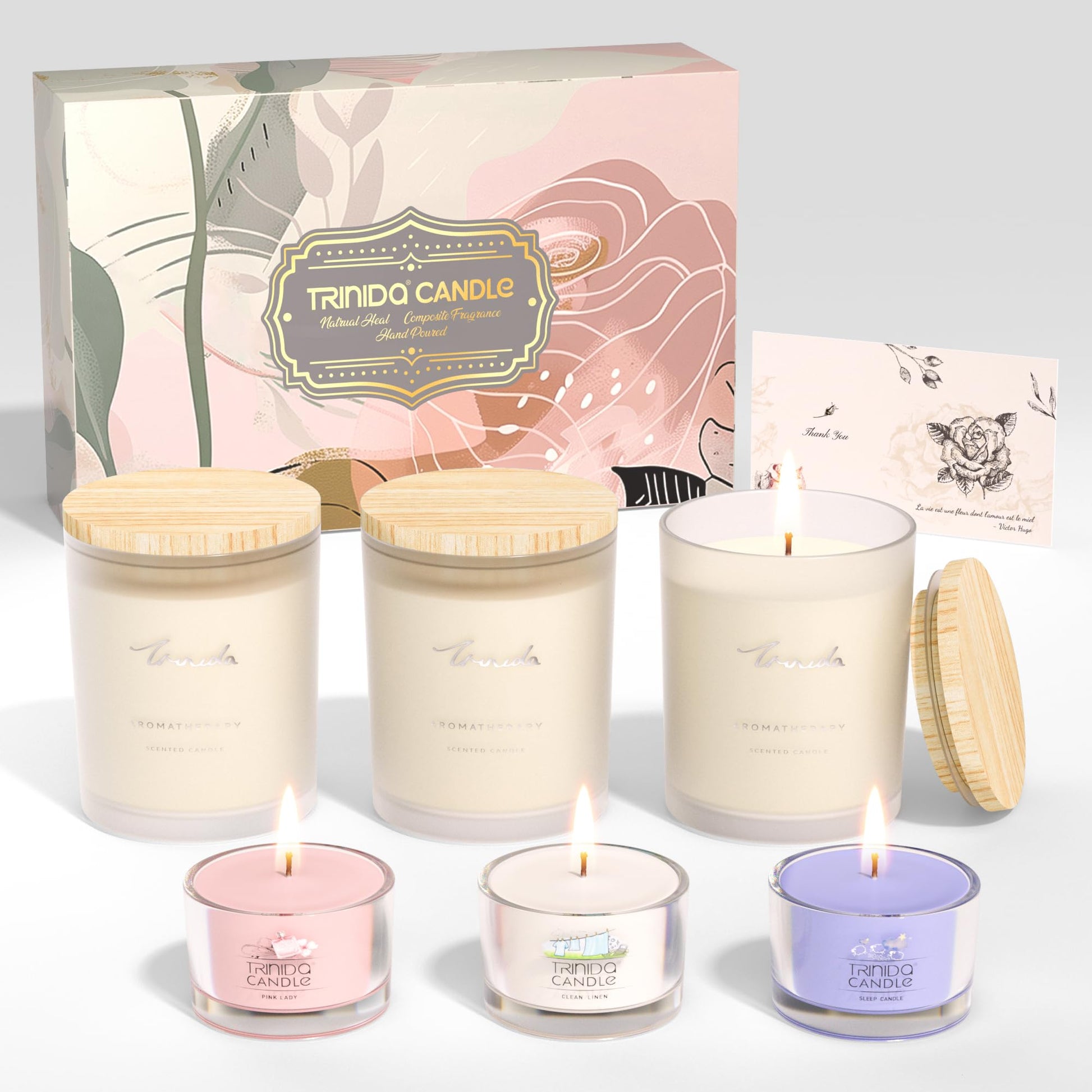 - Gift-Ready Luxury Candle Set: Curated 6-Piece Scented Candle Gift Set (3 Full-Size + 3 Travel-Size) - Artfully packaged for birthdays, weddings & holiday gifting. Includes crowd-pleasing scents like Lavender Breeze and Clean Linen