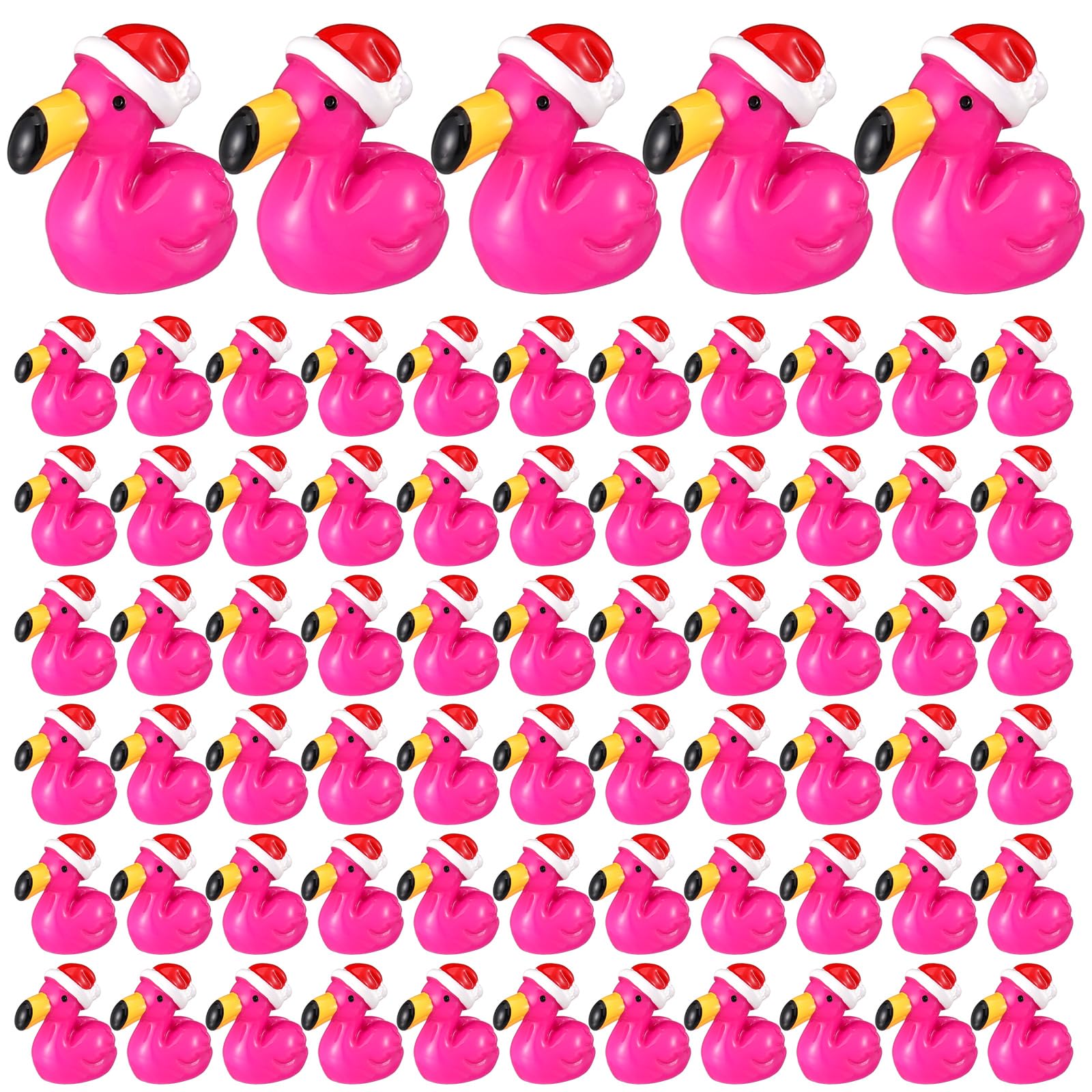 VioraWhite 100 Pcs Mini Resin Flamingos Ducks with Santa Hat Christmas Pink Flamingo Figurine Tiny Animals Set for Garden Lawn Decor DIY Craft Dollhouse Micro Landscape Aquarium Ornaments Party Gifts