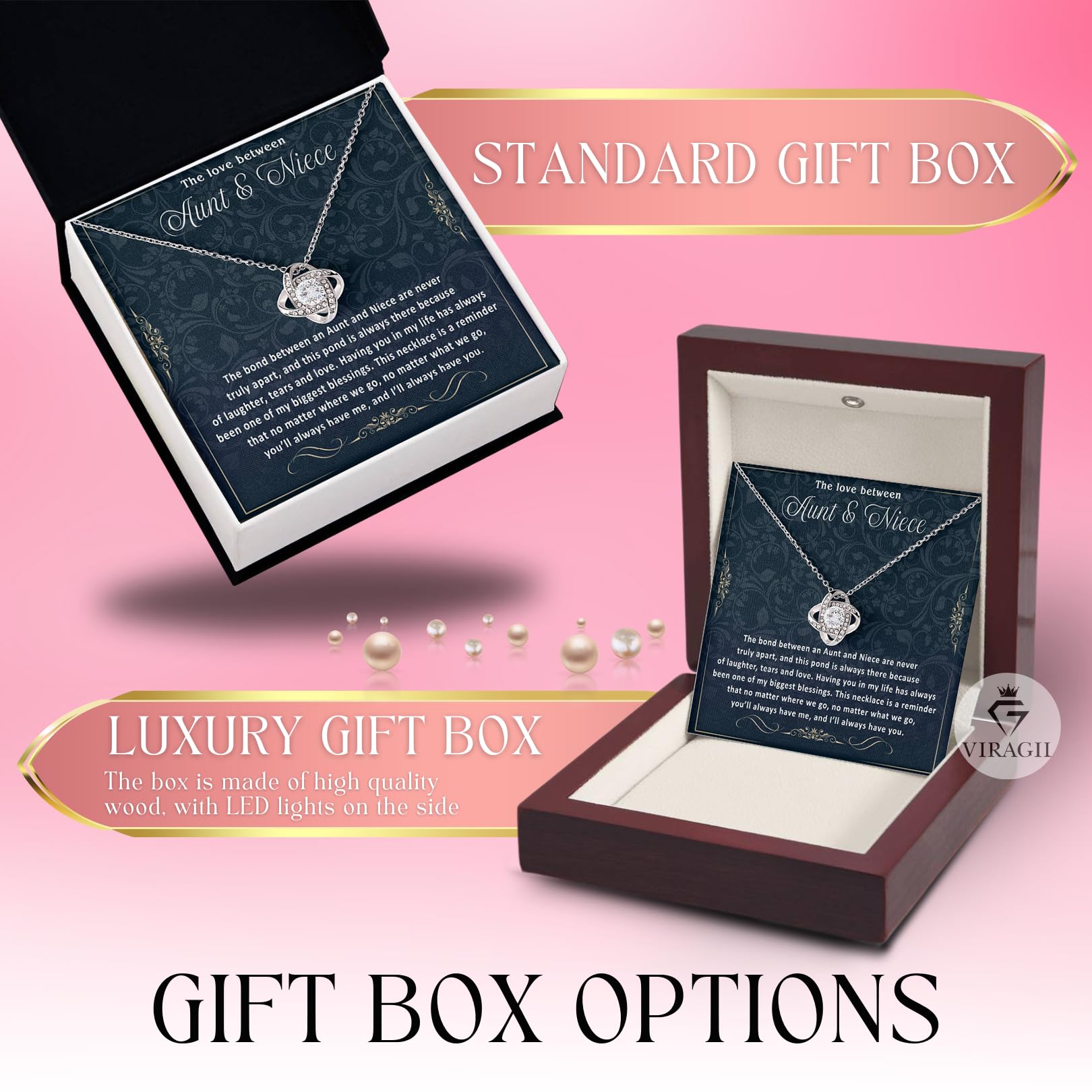 VIRAGIL Aunt Gifts from Niece, Gifts for Niece from Aunt, Aunt and Niece Gifts, Sterling Silver Love Knot Necklace, Mahogany Luxury Gift Box, Aunt Birthday MothersDay Gifts, Christmas Gifts, Card 1