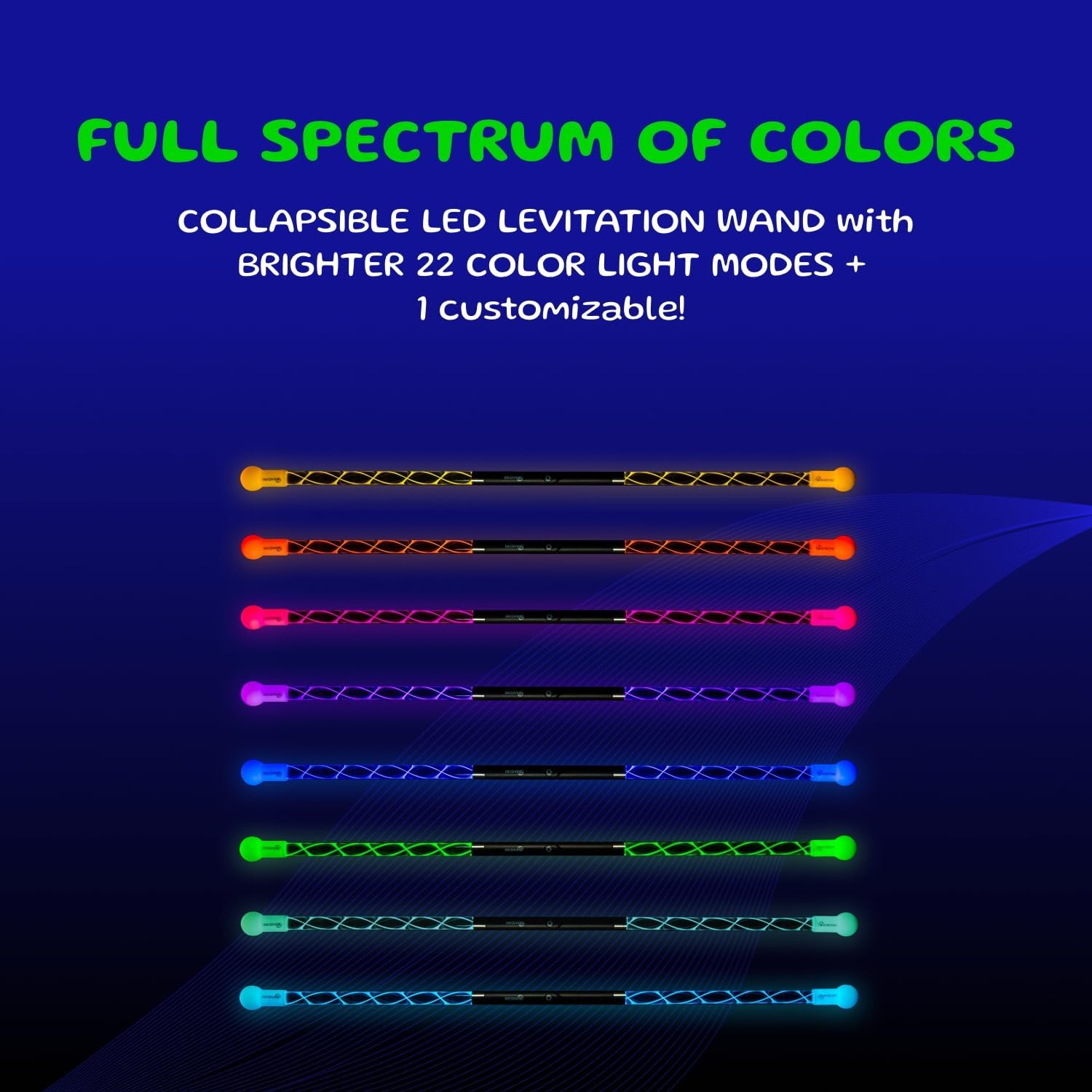 - The first & only collapsible LED levitation wand – This Levi stick is the only LED glow wand on the market that collapses down for easy transport, so you can fit it easily into your bag and take it with you wherever you go! Our magic staff assembles quickly when you need it, opening up to a full 24” length.