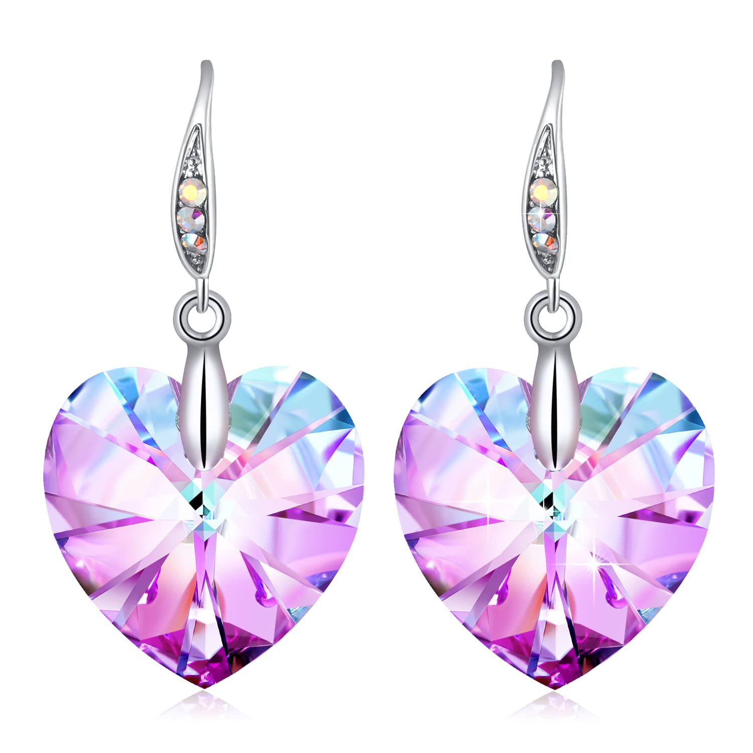 Women's Heart Crystals Earrings Drop Dangle Fish Hook Earrings for Birthday Anniversary Christmas Mother's Day Valentine's Day, Gifts for Her