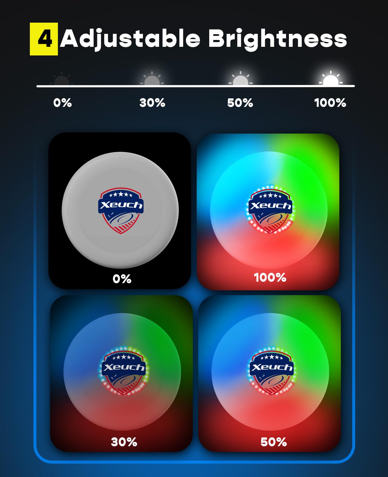 Xeuch 2 Pack Flying Disc, Glow Frisbee with 30 RGB LEDs, 16 Light Modes and 4 Brightness, 6-Hour Playtime, Built-in Timer & Sensor, 175g - Christmas, Birthdays Gifts for Men/Boys/Teens/Kids