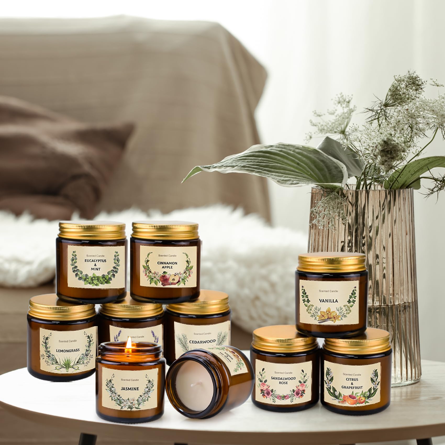 YINUO LIGHT 10 Pack Candles for Home Scented Aromatherapy Candles Gifts Set for Women, Natural Soy Wax Amber Candles Set, Birthday, Mother's Day, Christmas, Anniversary Present