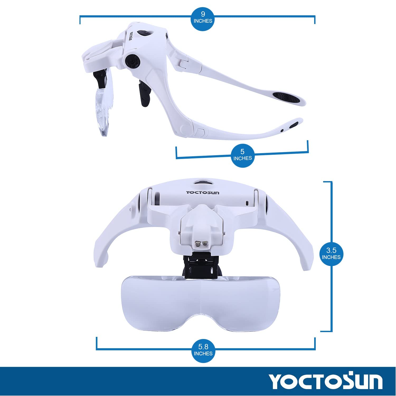 YOCTOSUN LED Head Magnifier, Rechargeable Hands Free Headband Magnifying Glasses with 2 Led, Professional Jeweler's Loupe Light Bracket and Headband are Interchangeable
